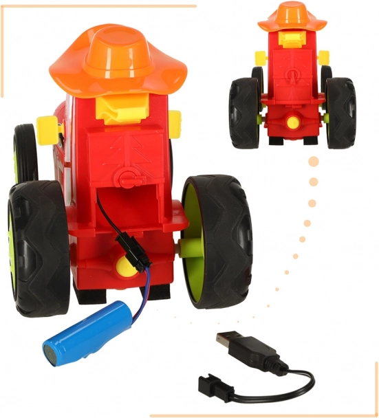 Den hoppende traktor er lavet af holdbar plast, som tåler daglig leg. Det genopladelige 3,7 V batteri sparer penge på batterier og oplades nemt via USB-kabel (medfølger). Legetøjet understøtter udvikling af manuelle færdigheder og kan være en fantastisk introduktion til RC-modellernes verden.