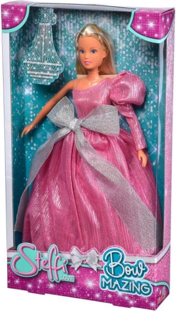 Dukken Steffi Love Bowmazing fra firmaet Simba imponerer med et raffineret udseende, der fremhæver asymmetrisk snit og skinnende elementer. Steffi er klar til enhver social begivenhed, hvad enten det er i børns leg eller som en samlerdekoration.