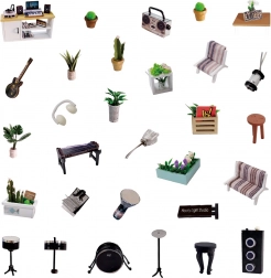 Skab din egen musiske verden i form af et detaljeret miniature dukkehus – Musikstudie. Sættet indeholder alt, hvad du behøver for at samle det, inklusive småt værktøj og tilbehør. Takket være LED-belysning (strømforsyning 2× AA, medfølger ikke) træder alle detaljer frem, og dit værk forvandles til en hyggelig dekoration.