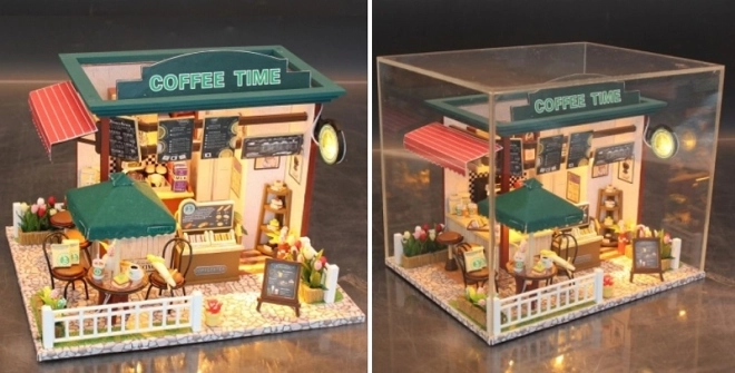 Oplev miniaturens magi med det detaljerede cafébyggesæt Coffee Time. Byg et charmerende hjørne med realistisk udstyr, LED-belysning og masser af byggetilbehør. Ideelt til afslapning og udvikling af finmotorik, tålmodighed og æstetisk sans – den færdige model bliver en stilfuld dekoration i dit hjem.