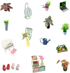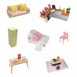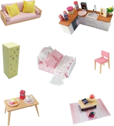 Sættet indeholder miniaturemøbler, der giver huset et realistisk udseende.