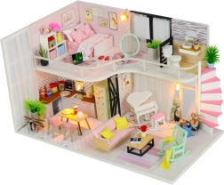 Oplev detaljernes magi med miniaturedukkehuset Annas Lyserøde Melodi. Puslespil til finmotorisk udvikling med belysning og elegant mønster.
