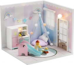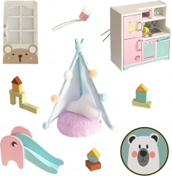 Byg dit eget børneværelse med minikøkken, rutsjebane og klodser. Denne miniature er ideel til at udvikle børns fantasi og kreative tænkning.