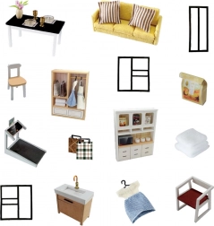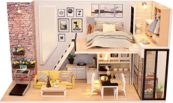 Dette byggesæt indeholder LED-belysning, der giver dit værk et realistisk udseende. Bemærkelsesværdige er også de realistiske dekorative detaljer, inklusiv kunstneriske vægge, sofa og spisebordssæt.