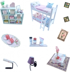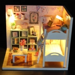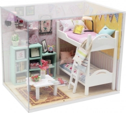 Oplev miniaturemagi med det kreative byggesæt Cherylin. Dette detaljerede sæt byder på et hyggeligt værelse med køjeseng, bogreol og tilbehør, som du selv bygger, limer og dekorerer. Inkluderer LED-belysning, beskyttende plexiglas og en detaljeret vejledning. Et glimrende valg til afslapning og udvikling af motorik, fantasi og tålmodighed.