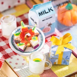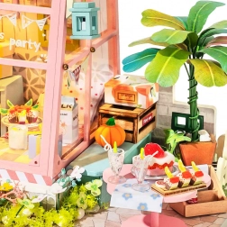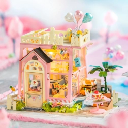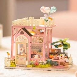Dette detaljerede DIY-sæt lader dig samle din egen miniaturebutik i pastelfarver med fine accessories, balloner og blomster. Det integrerede LED-lys skaber en behagelig stemning om aftenen og forvandler modellen til en charmerende dekoration. Takket være det komplette tilbehør i pakken kan du gå i gang med det samme.