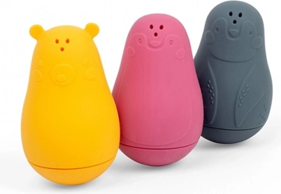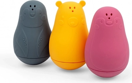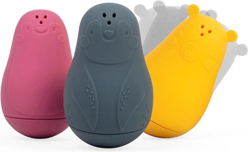 Den søde pingvin, isbjørn og sæl forvandler hvert bad til en sjov leg. Fyld dem med vand, klem, og se vandstrålerne fra de tre åbninger foroven. Takket være den bløde, men robuste 100% silikone føles legetøjet behageligt, er sikkert for børn og mere skånsomt for miljøet.