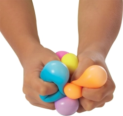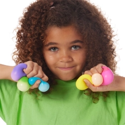 Teenie NEE DOH er en mindre version af de ikoniske klemmbolde, designet til at passe perfekt i et barns håndflade. Takket være det ultrabløde fyld giver de en behagelig modstand ved tryk og hjælper med at reducere stress og uro. Boldene kan klemmes, trækkes og flades ud – og vender hver gang tilbage til deres form.