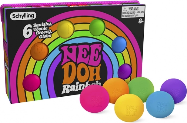 Seks strålende bolde i regnbuens farver giver både sjov og stresslindring – ideelle for både børn og voksne.
