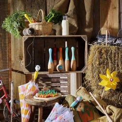 Sættet passer til børn fra 5 år og støtter koordination, koncentration og finmotorik. Takket være de kompakte mål kan du nemt tage det med på tur, på picnic eller i haven.