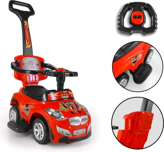 En anden funktion er det interaktive rat, som gør legen endnu mere spændende! Livlige farver og glade melodier opmuntrer dit lille barn til at lege og opdage nye funktioner. Produktet er lavet af plast af høj kvalitet, hvilket gør legen helt sikker. Meget let at samle og skille ad. Stabilt og sikkert! Takket være 3-i-1-muligheden “vokser” gåbilen med dit barn, blandt andet via sikkerhedsbøjlen til de mindste brugere.