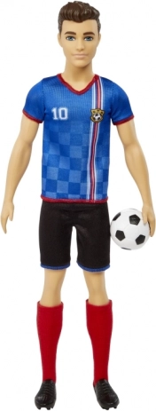 Fejr fodbold med KEN! Gør dig klar til sjov med Ken-dukken inspireret af en af verdens mest populære sportsgrene. Ken, klædt i en blå trøje, bringer en bid af fodboldbegejstring direkte hjem til dig.
