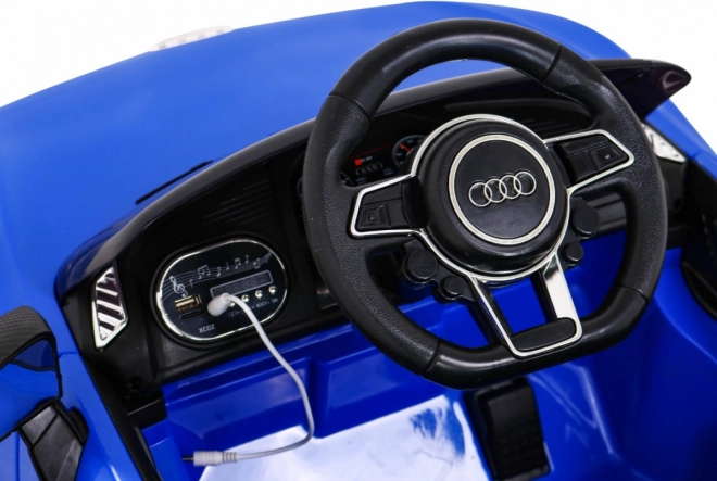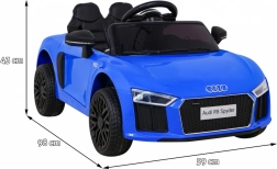 Den stilfulde elektriske legebil AUDI R8 Spyder i blå giver børn en realistisk køreoplevelse. To motorer 2 × 35 W, batterier 2 × 6 V/4,5 Ah, bløde EVA-hjul og blød start sikrer komfort og sikkerhed. Forældre vil sætte pris på 2,4G fjernbetjening med stopknap og 3 hastigheder. Lydpanel med USB/SD/AUX, MP3 og LED-lys for og bag sørger for underholdningen.