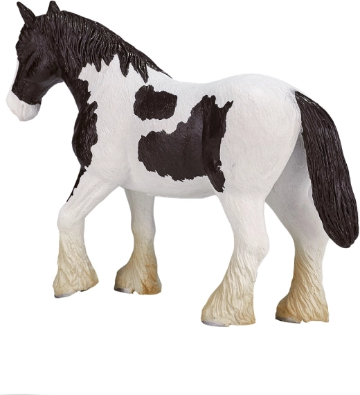 Denne detaljerede figur fremstiller den majestætiske Clydesdale-race i sin karakteristiske sort/hvide farve. Takket være kvalitetsmateriale og omhyggelig formgivning udmærker den sig ved realistisk man, hale og ”faner” ved benene, som øger modellens autenticitet.