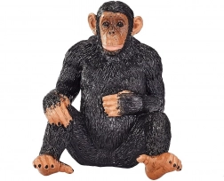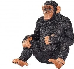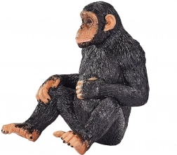 Denne chimpansefigur i siddende position giver et sandt billede af livet i den afrikanske natur, med fokus på mimik og detaljer.