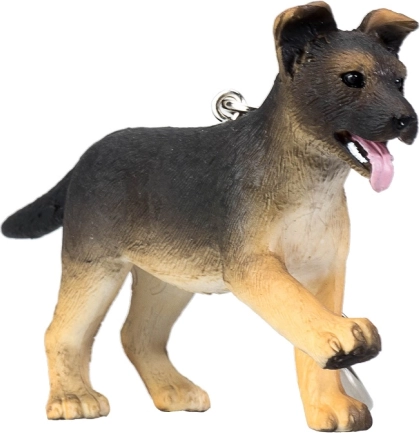 Med denne nøglekæde kan du altid have din yndlings schæferhund med dig. Figuren er håndmalet og fremhæver troværdige detaljer samt typiske farver af racen. Nøglekæden er lavet af kvalitet PVC uden phthalater og udstyret med en metalkrog for nem fastgørelse.