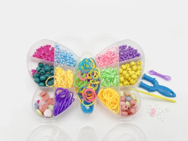 Kreativt sæt til fremstilling af Loom Band-armbånd for både børn og voksne. I pakken finder du 338 stk. farvede elastikker og perler, et lille håndvæv, en hæklenål og forbindelsesclips – kort sagt alt, hvad du behøver for at lave dine egne smykker og pyntegenstande. Perfekt til at udvikle finmotorik, kreativitet og til sjov med vennerne.