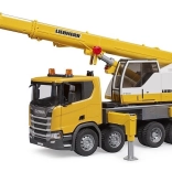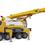 Det funktionelle wirespil med lås og overbelastningsbeskyttelse gør det nemt at løfte og sænke laster sikkert. For et autentisk udseende har modellen åbnebare døre, klapbare sidespejle og gennemsigtige, slagfaste ruder. Det integrerede lys- og lydmodul øger legeværdien, og modellen er desuden kompatibel med BRUDER bworld-figurer.