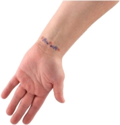 Brugen er enkel: pil skabelonen af, placer den på det ønskede sted, farv forsigtigt felterne, lad blækket tørre i ca. 10 minutter og fjern skabelonen. Resultatet er rene og tydelige motiver.
