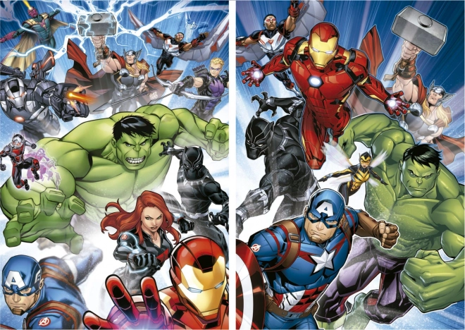 Nyd sjov for hele familien med EDUCA-puslesættet med motiv af AVENGERS. Pakken indeholder 2 puslespil med 100 brikker i samme format, ideelt til både børn og voksne. Når de er samlet, måler hvert puslespil ca. 28 × 40 cm.