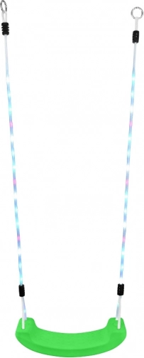 Skru op for sjoven til maks! Denne børnegynge i grøn kombinerer et slidstærkt plast-sæde med LED-belysning direkte i tovene. Med den medfølgende fjernbetjening skifter du nemt mellem flere lysindstillinger og skaber en magisk stemning i haven, på legepladsen og på børneværelset.