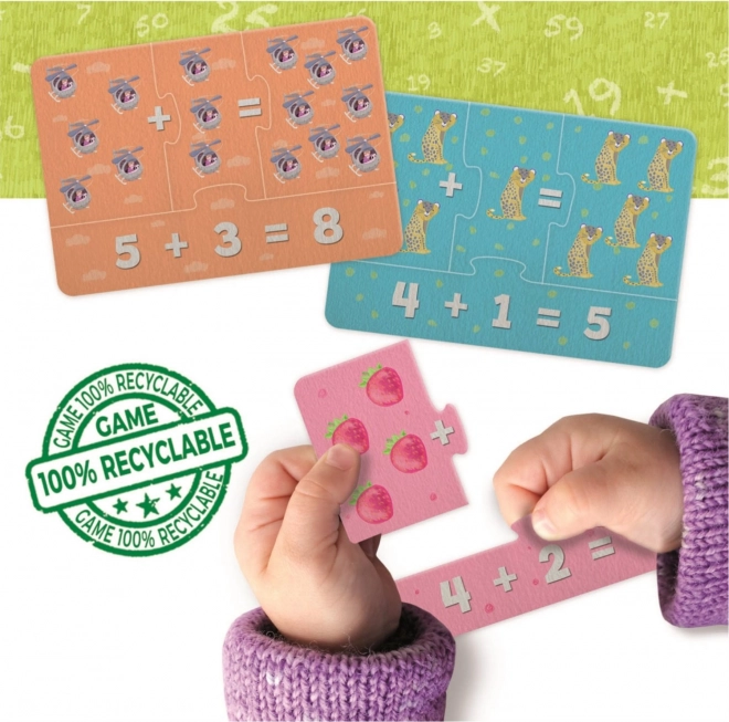 Opdag en sjov vej ind i tallenes verden med serien EDUCA Learning is Fun. Dette læringsspil og puslespil lærer børn at kende tal, bruge matematiske symboler og træne grundlæggende addition og subtraktion. Hvert regnestykke består af 4 puslespilsbrikker, som udvikler finmotorik, logisk tænkning og tålmodighed. Fremstillet af 100% genanvendelige materialer.