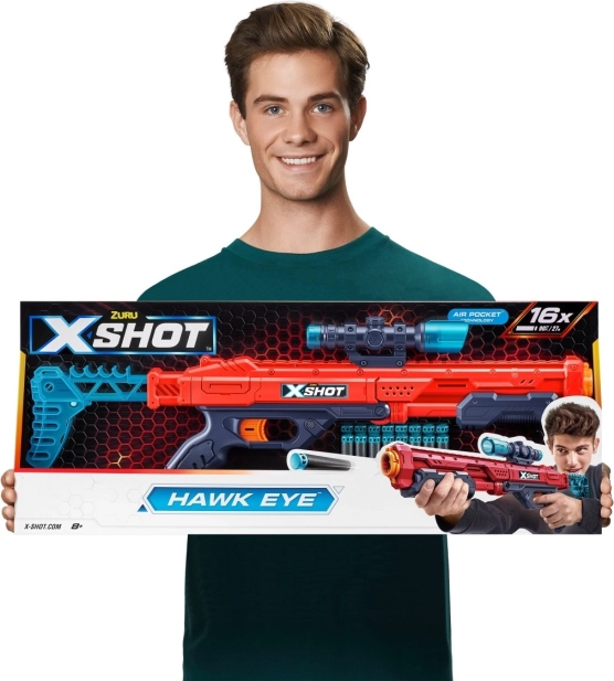 - X-Shot Hawk Eye blasteren lover god målsøgningspræcision.