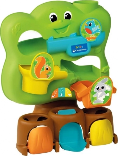 Det magiske træ gør læring til leg. Børn putter tre farvede bolde i forskellige størrelser i, følger deres tur ned ad rutsjebanerne og finder de rigtige låger efter farve. Glade farver, søde fuglefigurer og varierende mekaniske elementer udvikler naturligt finmotorik, synssans og tålmodighed.