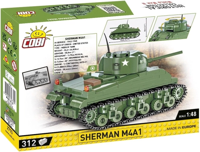 Oplev den ikoniske amerikanske mellemstore kampvogn M4A1 SHERMAN som et kvalitetsbyggesæt fra COBI i skala 1:48. Modellen byder på roterende tårn, bevægelig kanon og funktionelt bælledrev. Delene med holdbare tryk slides ikke af og er kompatible med andre byggesæt. Ideel til historieentusiaster, begyndere og samlere.