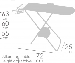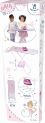 Pakken indeholder praktisk tilbehør til komplet leg – et plastikstrygejern, 3 bøjler til kjoler samt en stofkurv fastgjort til konstruktionen. Brættet er sammenklappeligt, let at bære og opbevare, og takket være materialer af høj kvalitet (metal, plast, tekstil) tåler det daglig brug.