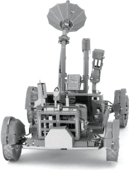 Oplev byggeglæden med det metal 3D-puslespil af måneroveren METAL EARTH. Af kvadratiske stålplader på 11 × 11 cm opstår der takket være et smart låsesystem en autentisk model med fine detaljer på antenner, hjul og konstruktion. Resultatet er en realistisk miniatur inspireret af det virkelige måneundersøgelseskøretøj.