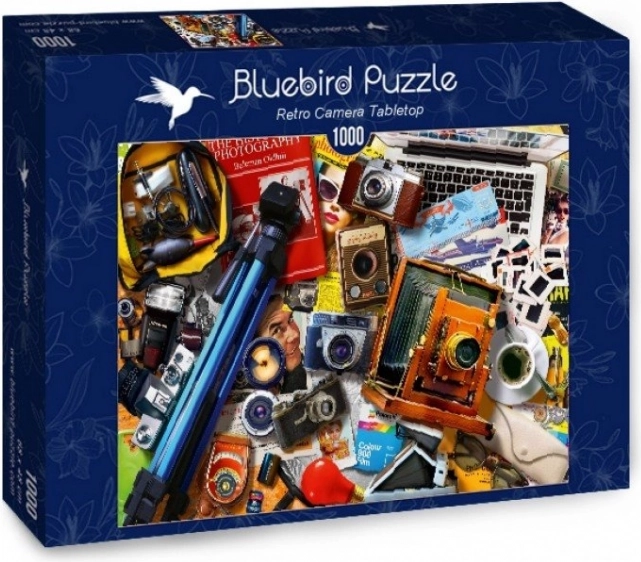 Puslespil Samling af Retro Kameraer fra Bluebird med 1000 brikker. Mål 68x48 cm, ideelt til afslapning og som dekoration.