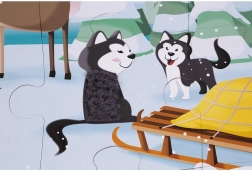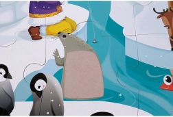 Puslespillet med temaet livet på isen er et godt valg til både fælles leg og stille stunder. Børn lærer naturligt at skelne farver, former og størrelser og forstå forholdet mellem del og helhed – alt sammen gennem leg.