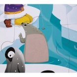 Træd ind i den fascinerende verden nord for polarcirklen sammen med børnene. Dette følepuslespil kombinerer glæden ved at lægge puslespil med at udforske forskellige teksturer – nogle brikker har specielle overflader, som stimulerer følesansen og hjælper børn med at lære polardyr at kende ikke kun med øjnene, men også gennem berøring.