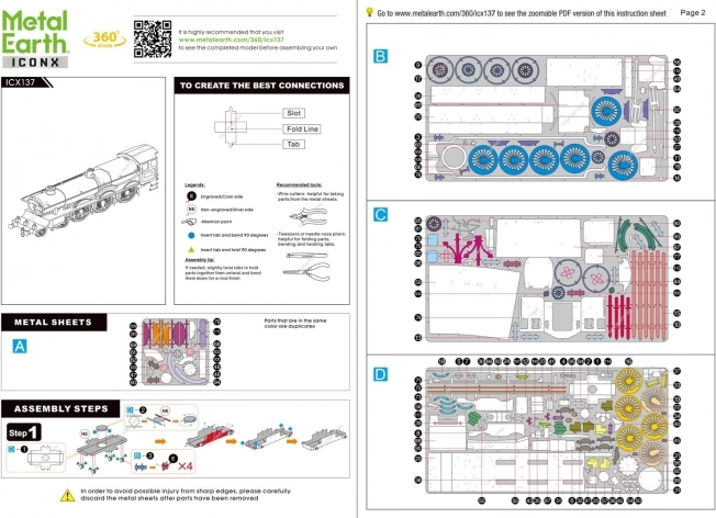 Samlingen er ren og intuitiv – delene trykkes let ud af stålpladerne og forbindes med låse, så du ikke behøver lim. For mere komfort anbefaler vi fine tænger og små skævbidere (ikke inkluderet). I pakken finder du også en pincet og en overskuelig vejledning, der guider dig gennem hele processen.