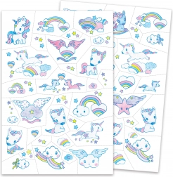DJECOs midlertidige tatoveringer med enhjørningemotiver er et ideelt valg til børnefødselsdage, karneval og hverdagens leg. Børn kan pynte hænder, ansigt og ben med glade og fine motiver, som er dermatologisk testet for sikker brug.