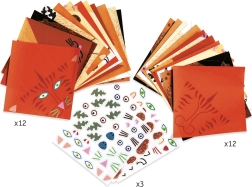 I sættet finder du 24 farvede papirer til at lave 4 sæt med seks dyr, 3 ark klistermærker og en detaljeret billedvejledning. Takket være de tydelige trin er foldningen let selv for mindre børn.