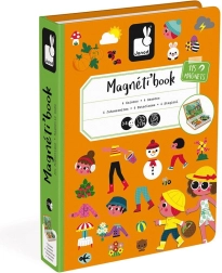 Den magnetiske bog Janod Magnetibook – årstider udvikler fantasi, logisk tænkning og finmotorik. Børn lægger scener for de enkelte årstider ud fra kortene og vælger det rette tøj og tilbehør. Takket være det kompakte design i bogformat er den perfekt til rejser, i bilen og på besøg.