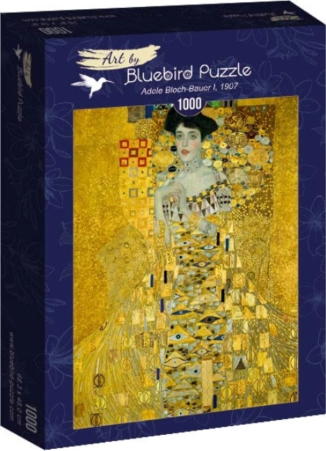 Bluebird puslespil Damen i guld – Gustav Klimt, 1000 brikker. Præcist tryk, nøjagtige udskæringer, færdigt mål 48 × 68,3 cm. Ideel til indramning.