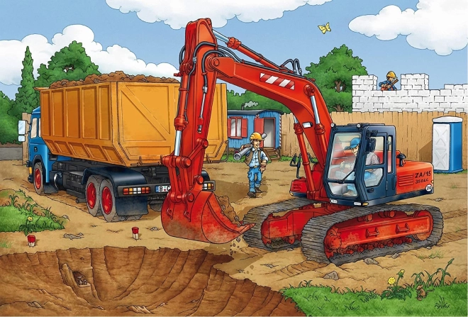 Dyk ned i det fascinerende byggepladsmiljø med SCHMIDT Puslespil På Byggepladsen. Hvert puslespil har dimensionerne 26,3 x 17,8 cm og viser dynamiske byggepladsscener.