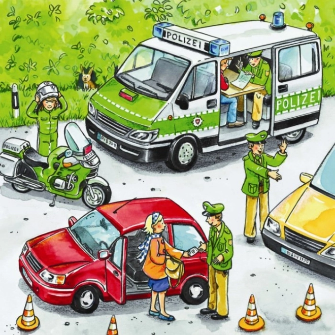 Dette sæt med tre puslespil med motiver af politibiler og indsatser giver børn glæde ved at lægge puslespil og udvikler finmotorik, logik og tålmodighed. Hvert puslespil måler færdiglagt cirka 17,8 × 17,8 cm, og takket være den præcise udstansning, som er typisk for RAVENSBURGER, passer brikkerne perfekt sammen.