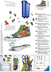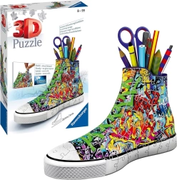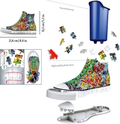 Oplev den unikke kombination af sjov og funktionalitet. 3D-puslespilssneakeren med graffiti-design består af særligt formede og fleksible plastikbrikker, der passer præcist sammen og skaber en stabil dekoration uden lim. Når den er samlet, får du en original organizer til blyanter, farver eller sakse, som giver dit bord et kreativt præg.