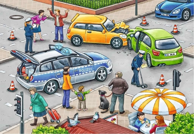 Oplev kvalitetsbørnepuslespil fra RAVENSBURGER med det gennemarbejdede motiv “Med blåt lys på vejene” og førsteklasses udførelse. I pakken finder du 2 puslespil med 12 brikker, perfekte til den første større lægning og til at udvikle finmotorik, koncentration og formgenkendelse.
