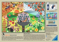 Ravensburger Jeg Elsker Fugle – Fuglesæsoner er et imponerende 1000-brikkers puslespil, der bringer et stykke natur ind i dit hjem. Illustrationen indeholder fuglearter som stillits, drossel, gulspurv og blåmejse, som er fremhævet med sæsonblomster. Dette kunstværk er lavet af Stuart Cox, der er kendt for sin passion for natur og detaljeret design.