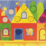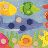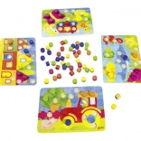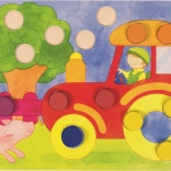 Først kan børnene lære at indsætte de farvede sten i billederne efter eget ønske og træne fingrene og finmotorikken.
