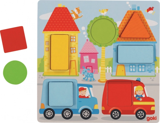 Støt dine børns kreativitet og fantasi med dette farverige indsætningsspil fra Goki. Børnene lærer ikke blot at genkende forskellige former og farver, men forbedrer også deres finmotorik og koncentration. At sætte de farvede brikker ind i billederne er både sjovt og en udfordring på én gang!