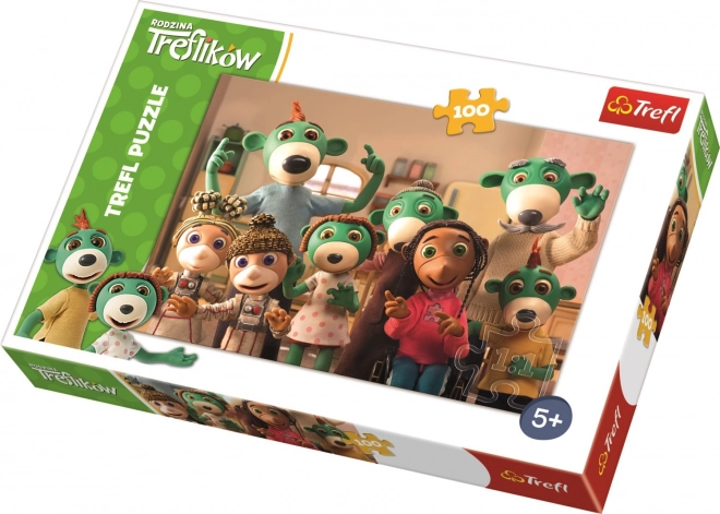 Treflíci puslespil med 100 brikker. Samlet størrelse ca. 41 × 27,5 cm. Præcis udskæring, mættede farver, understøtter motorik og logik. Perfekt til børn og begyndere.