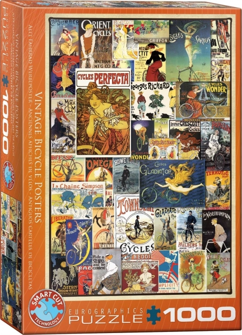 Eurographics puslespil Vintage cykelplakater bringer en spændende udfordring med sine 1000 brikker og unikke udskæring. Brikkerne har en usædvanlig form, hvilket øger sværhedsgraden og giver timevis af underholdning.