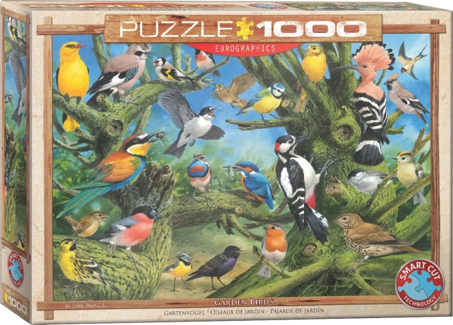 Oplev både sjov og udfordring med EUROGRAPHICS puslespil Fugle i haven – 1000 brikker med usædvanlige former takket være en stansematrice, der ikke følger det standardmæssige gitter. Når det er samlet, måler billedet cirka 67,63 × 48,89 cm.