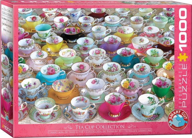 Nyd timevis af underholdning med det kvalitetsrige puzzle EUROGRAPHICS med motiv af en samling tekopper på 1000 brikker. Takket være en speciel stansning med usædvanlige brikformer byder puslespillet på højere sværhedsgrad, originale former og en enestående visuel oplevelse. Når det er samlet, opstår et billede på cirka 68 × 48 cm, ideelt til indramning.